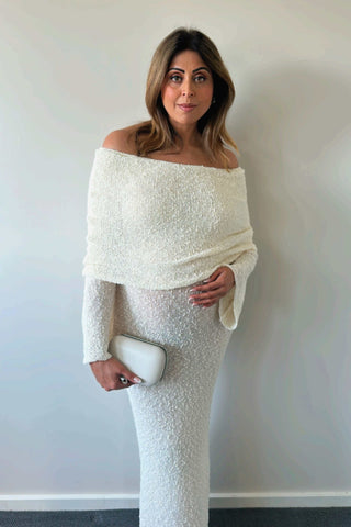 Meshki Marisol Off Shoulder Boucle Maxi Dress