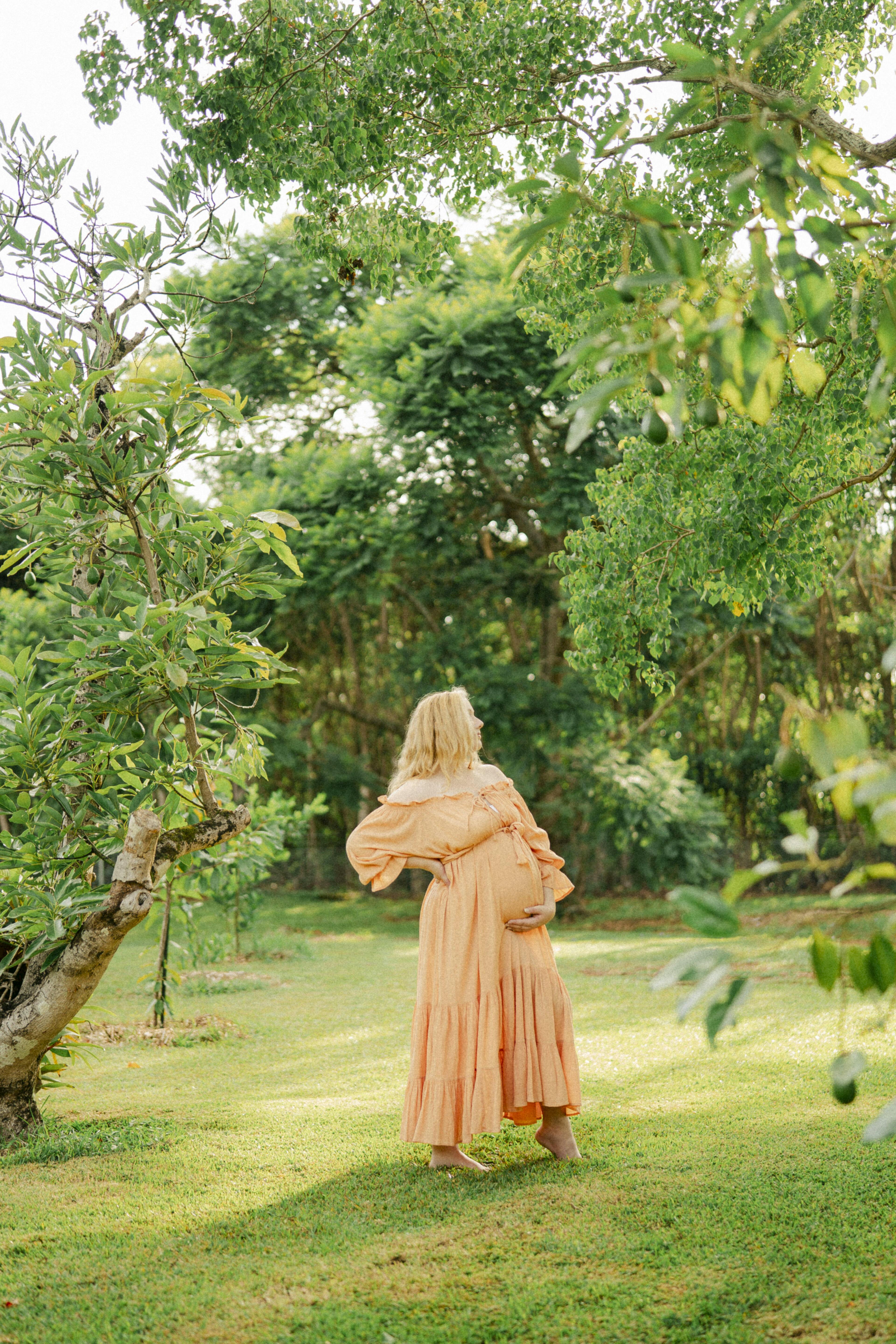 The Hazel & Folk Emmaline Maxi Gown in Toasted Peach is reminiscent of the gentle hues of a sunset. The warmth and vibrancy of the colour will make your photos pop. shower dress.