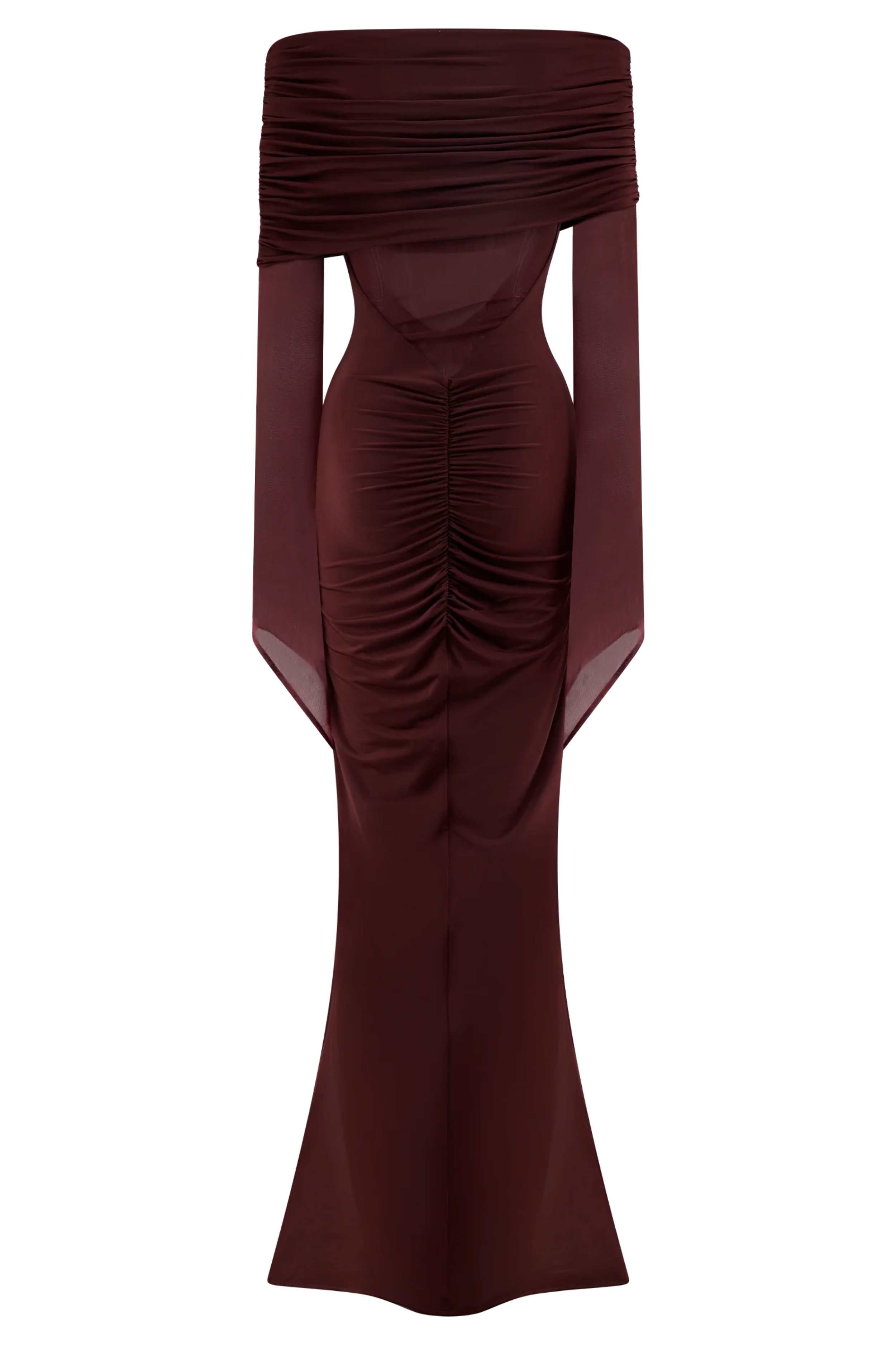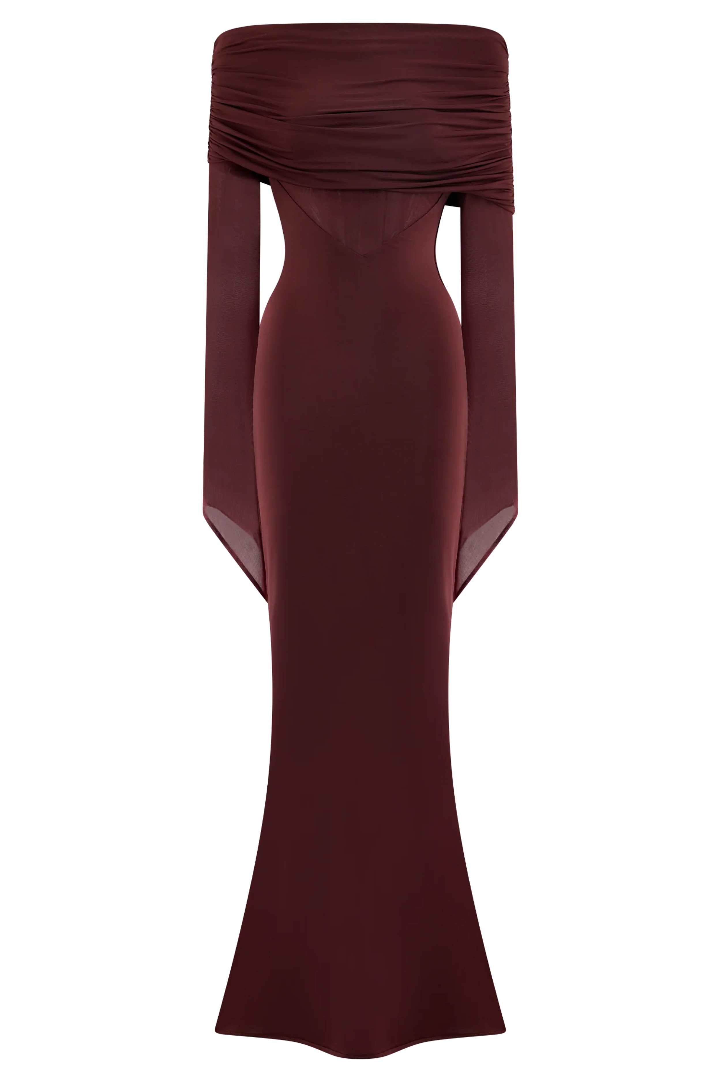 Meshki Kaitlin One Shoulder Slinky And Mesh Maxi Dress - Burgundy