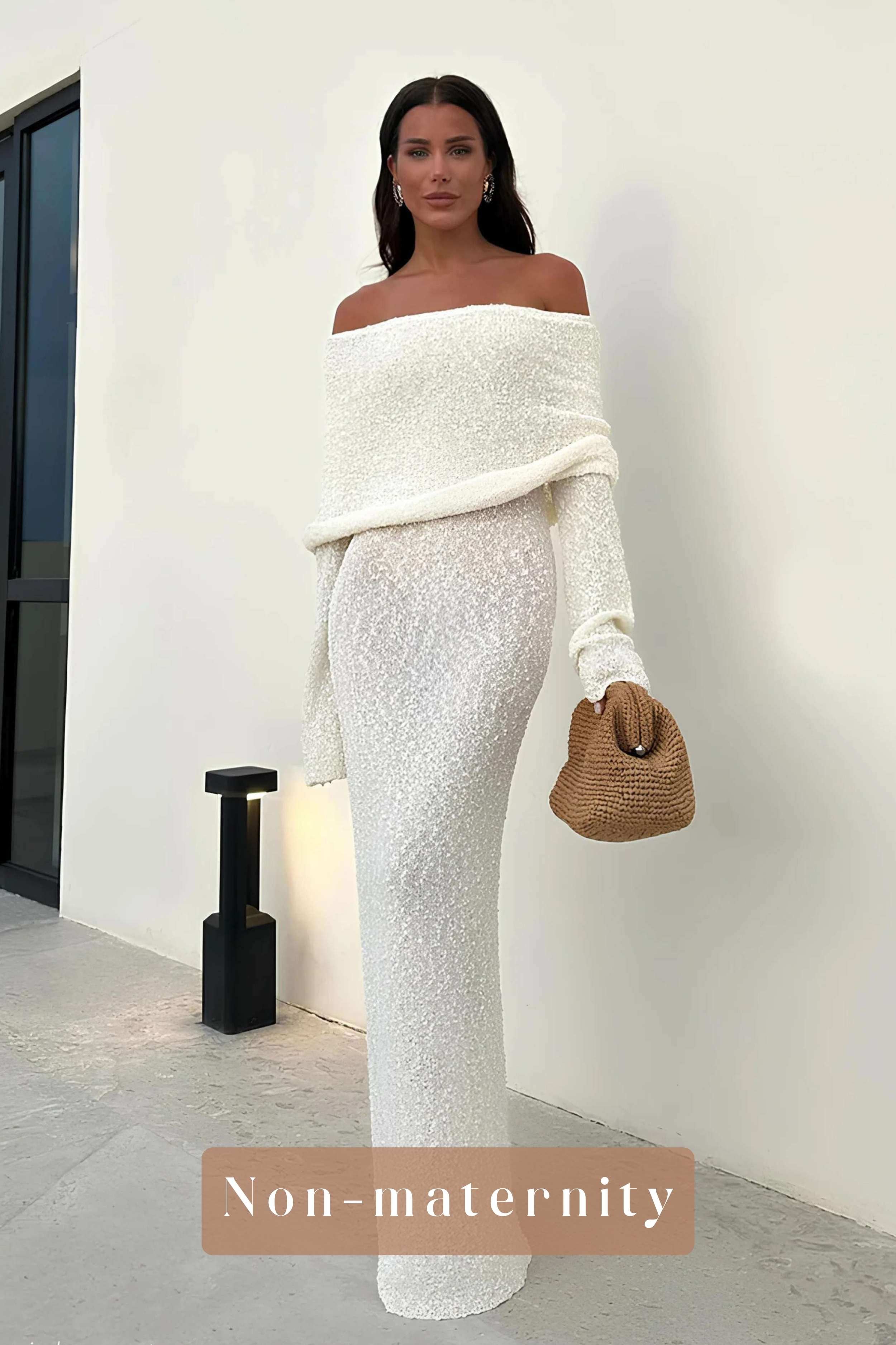 Meshki Marisol Boucle Maxi is the perfect dress for bridal showers, baby showers, photoshoots and elegant soirées.