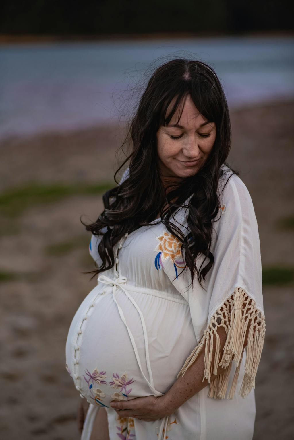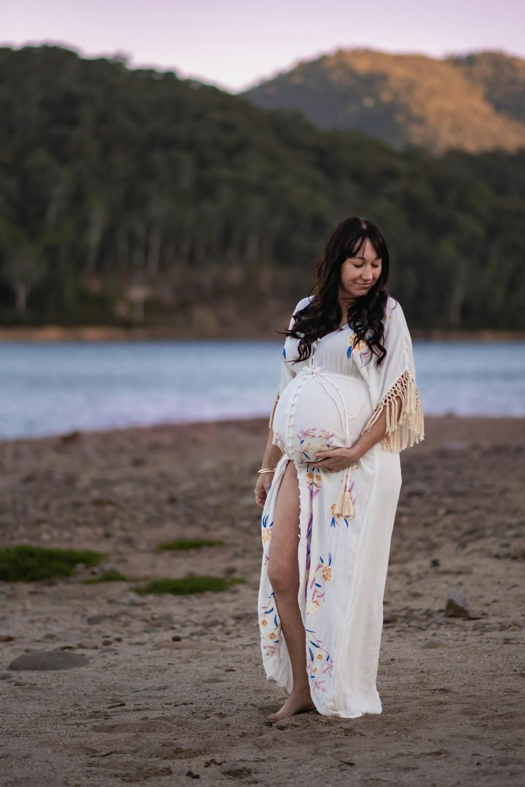 Featuring tassel sleeves and a deep plunge V-shaped neckline and backline, it is the dream dress for your boho elopement, engagement or wedding photos.